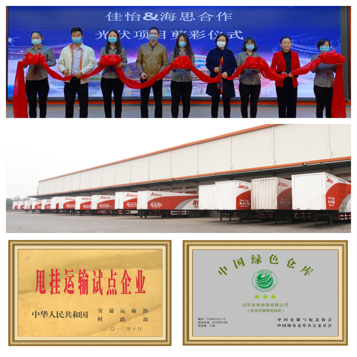 佳怡是交通运输部甩挂运输试点企业,率先推广使用新能源车;佳怡在自建的智慧供应链产业园区投资建设分布式光伏能源项目,济南两处园区被评为“中国绿色仓库”。这些创新案例深受行业认可,使佳怡成为山东省供应链创新与应用示范企业。