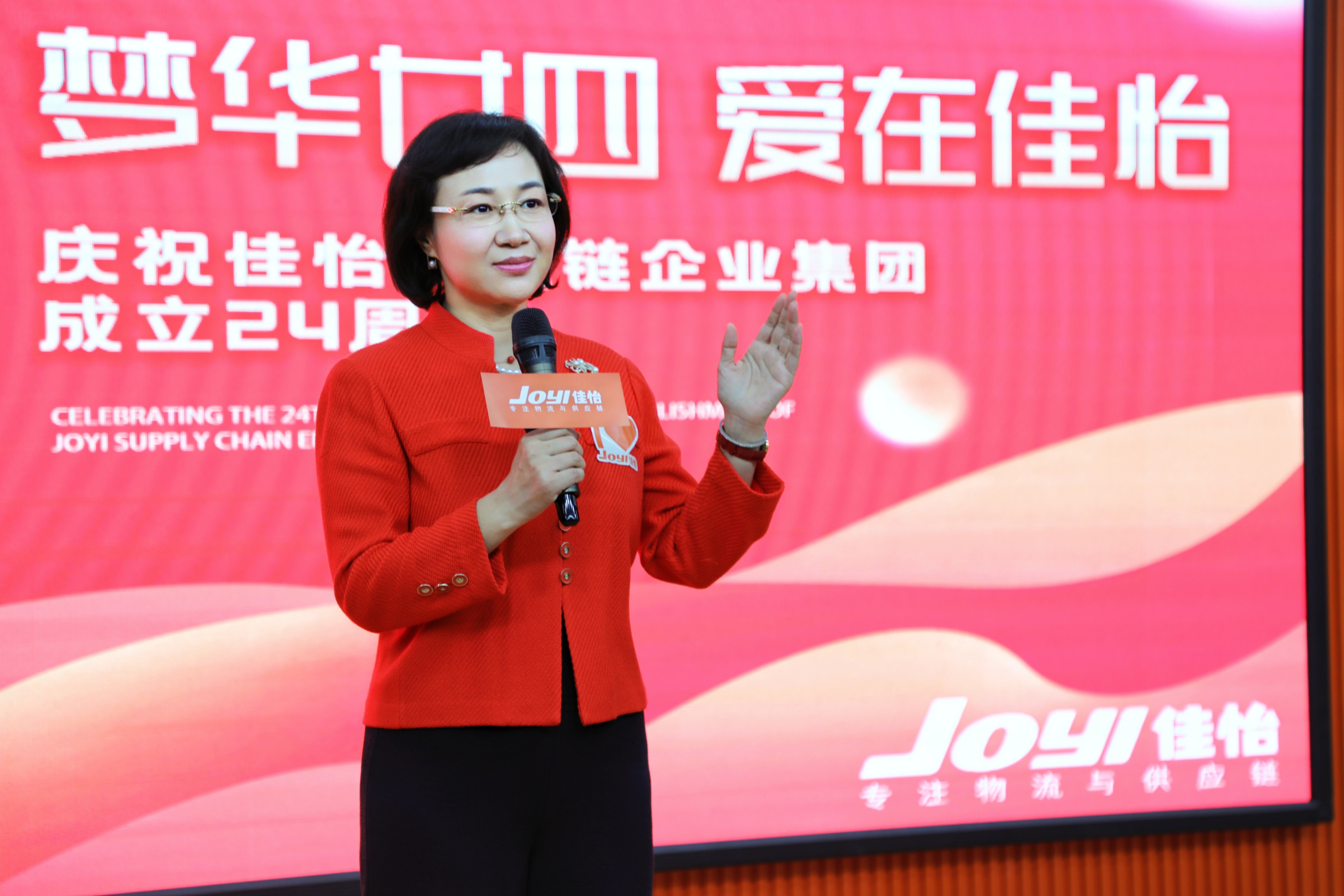 活动现场,佳怡人共同回顾佳怡二十四年发展历程,集团董事长孙倩发表庆祝讲话。她表示,佳怡走过的二十四年,是一部攻坚克难的创业史,也是一部砥砺前行的奋斗史。站在新起点上,佳怡将紧跟国家发展战略,坚守初心,聚焦供应链升级,为行业进步和社会发展作出贡献。希望全体佳怡人凝心聚力,奋楫笃行,向“五五”战略目标奋勇前进,向建立百年企业的宏伟目标稳健前行。