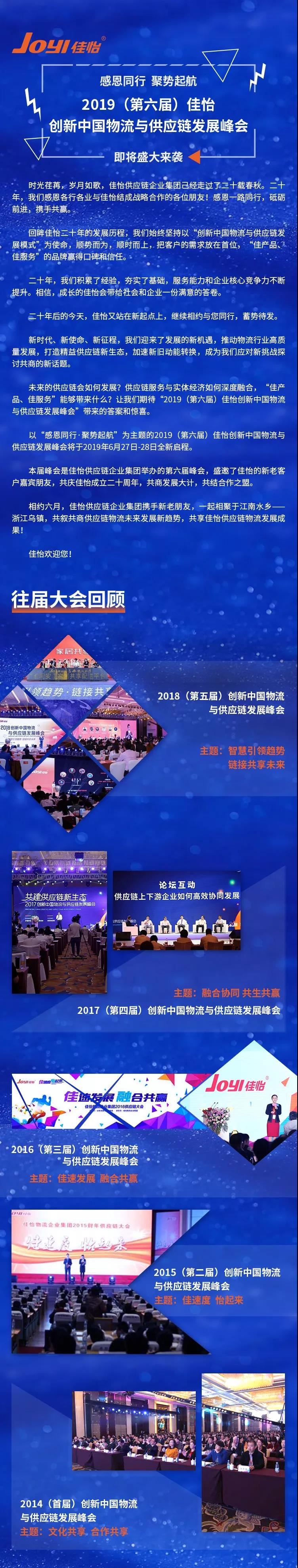 感恩同行·聚势起航——2019(第六届)佳怡创新中国物流与供应链发展峰会即将盛大来袭