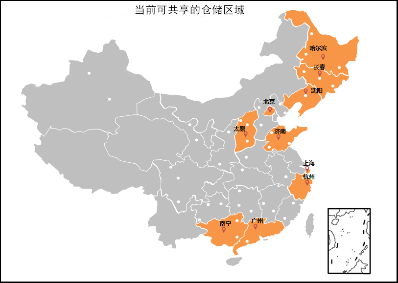 共享仓储,集约资源,开放共享,佳怡把集团旗下从南方区域到北方区域,位于一线省会城市的二十余处高标共享仓库,开放给行业客户做统一标准化管理下的集约使用,仓库具体位置及可用面积根据最终实际情况调整。